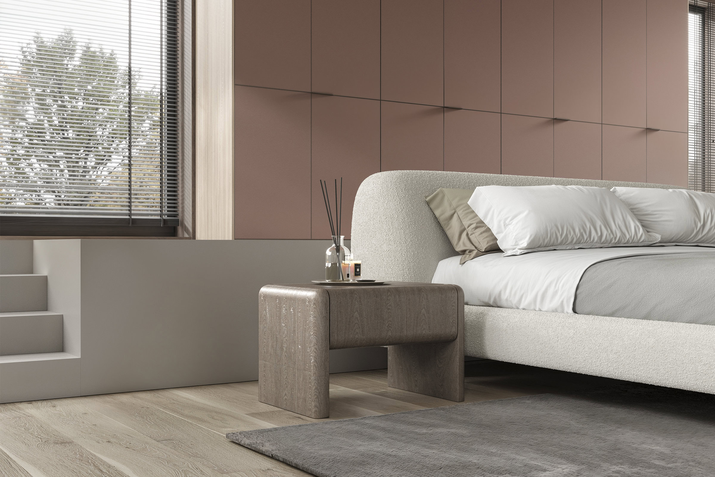 Le lit Bon Bon présente un design vraiment distinctif qui le différencie des cadres de lit traditionnels. Avec ses lignes courbes et ses coins arrondis, ce lit dégage une élégance ludique qui ne manquera pas de captiver l'imagination. Les quatre pieds en bois, chacun avec un design incurvé et mignon, fournissent un support solide tout en ajoutant à l'esthétique charmante du lit.