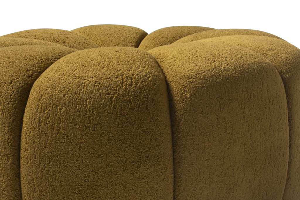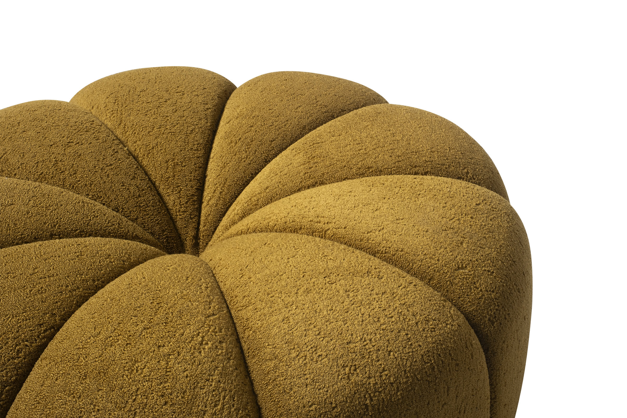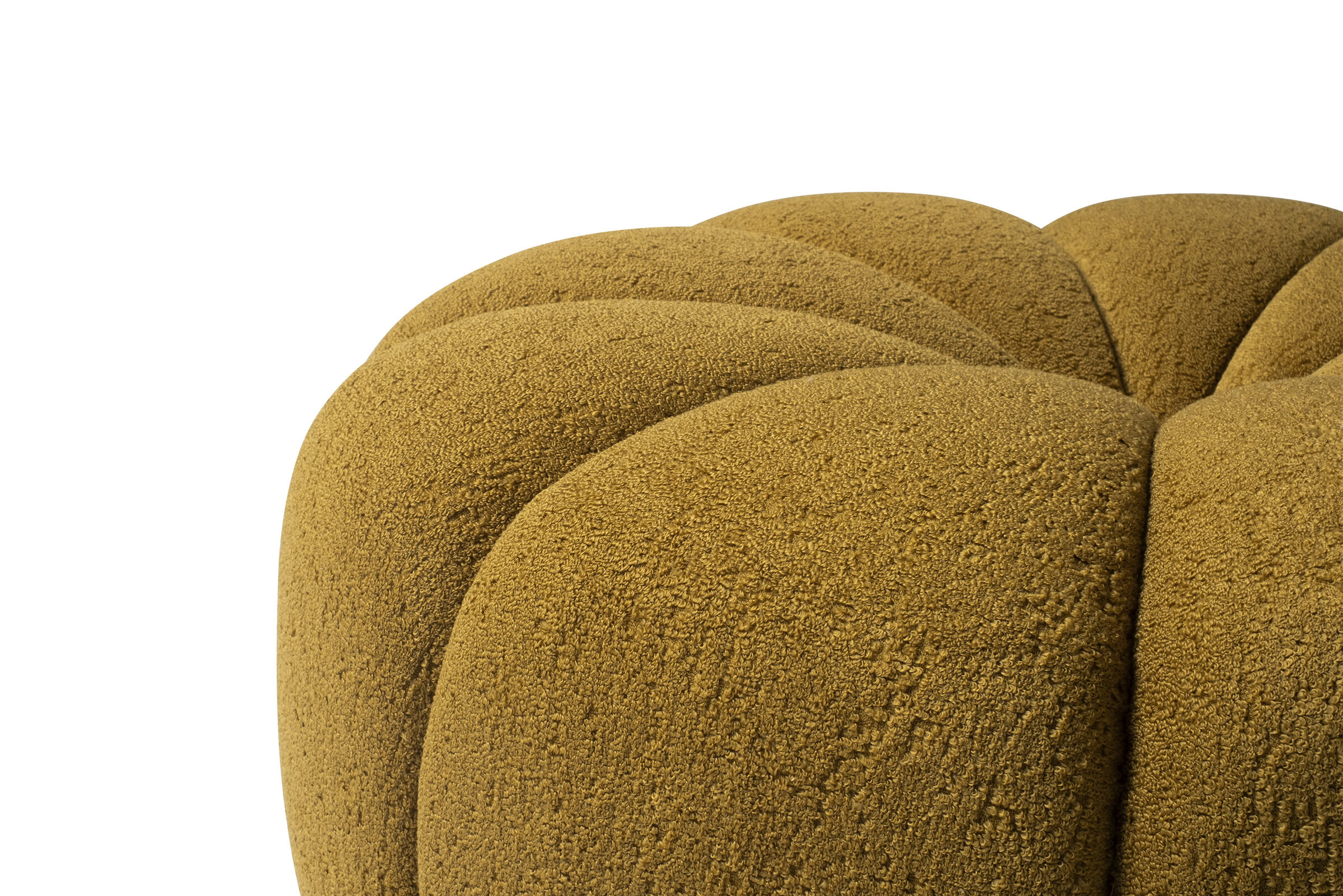 The Bibendum modern round ottoman from LEOPARD Furniture brings a playful sculptural touch to contemporary interiors while maintaining a refined and elegant presence. The Bibendum Ottoman features a distinctive pumpkin-inspired silhouette with soft, rounded segments that create visual depth and a welcoming aesthetic. Its compact size of 30.5 inches in width and 15.7 inches in height makes it a versatile piece that can function as a comfortable footrest, an occasional seat, or a stylish accent element in living rooms, bedrooms, and lounge areas. The balanced proportions and curved design allow it to integrate effortlessly into both modern and transitional spaces, adding character without overwhelming the overall composition.