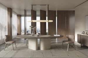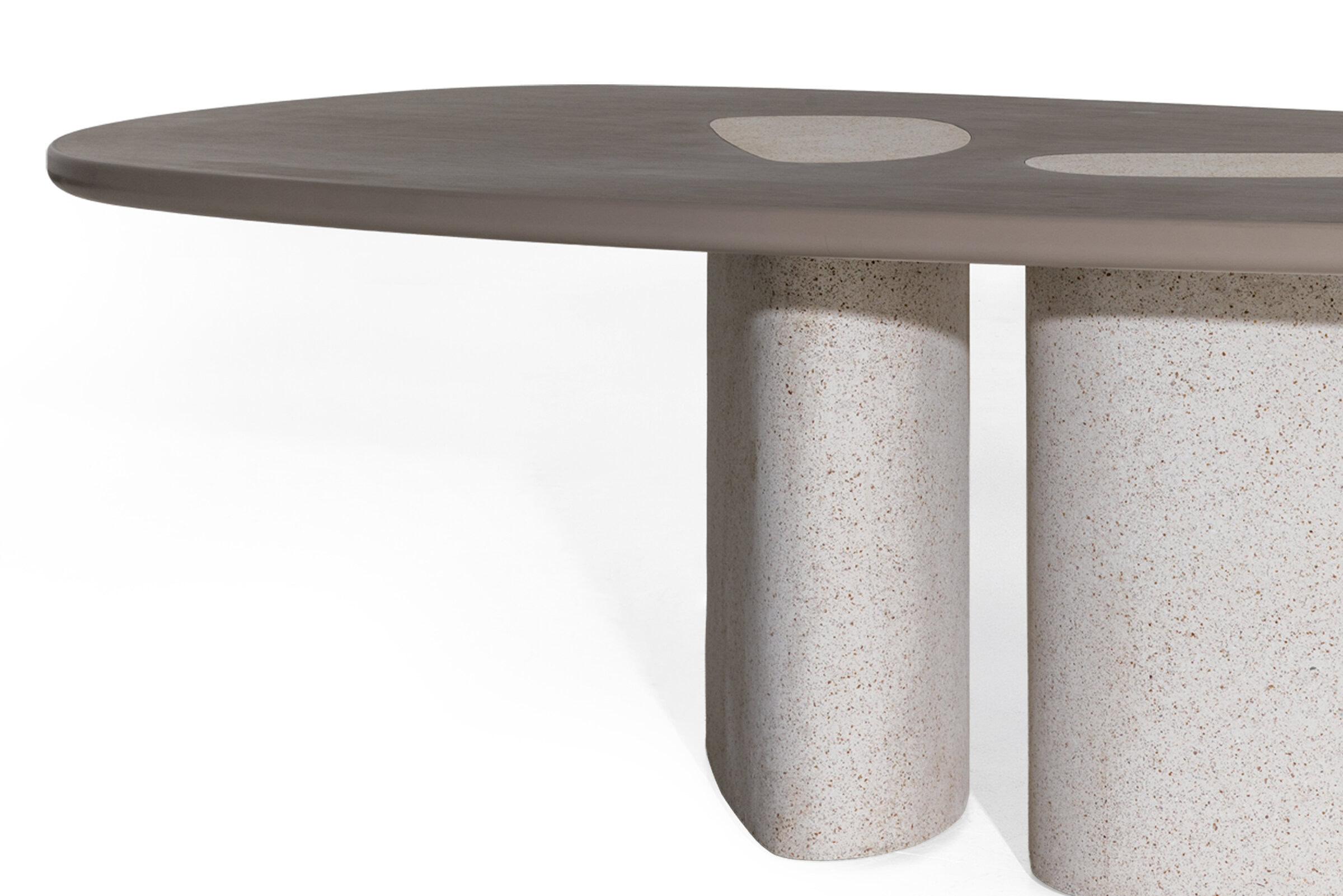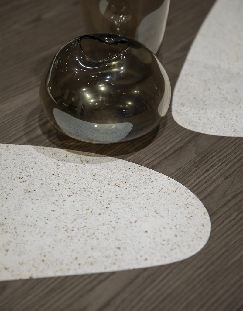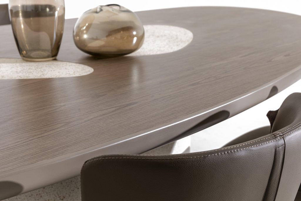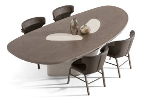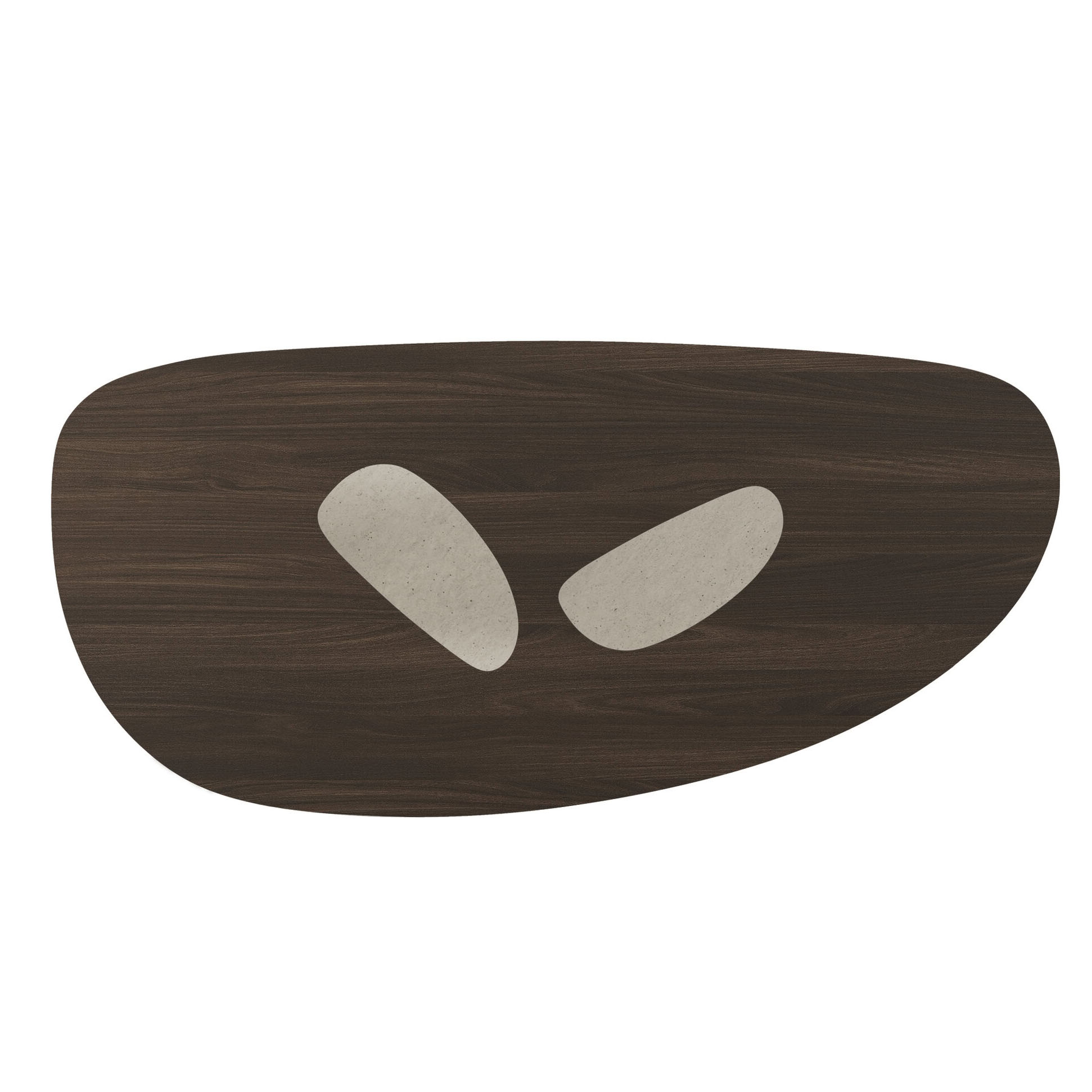 Its organically shaped tabletop is finished with warm wood veneer, adding a touch of nature and softness to the overall look. With its amorphous lines and bohemian spirit, the table seamlessly blends earthy textures with artistic elegance-perfect for interiors that embrace individuality and soulful design.