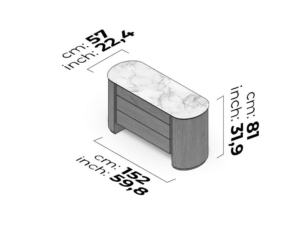 Upgrade your bedroom with the Naya Dresser, featuring clean lines, a pill-shaped stone tabletop, and three spacious drawers for ample storage. Perfect for contemporary or Scandinavian-inspired interiors, this dresser adds minimalist elegance to any living space in Canada.