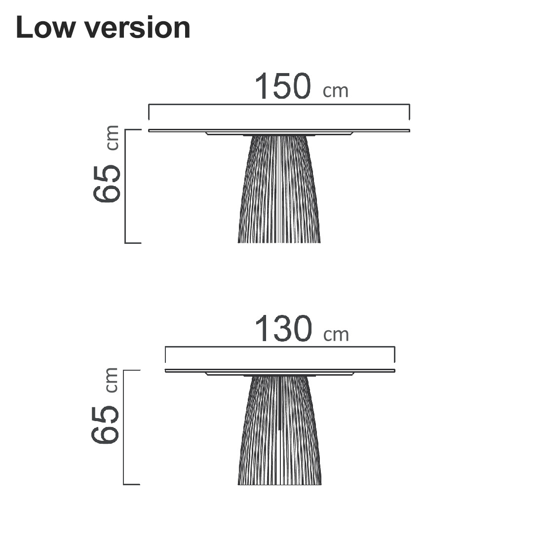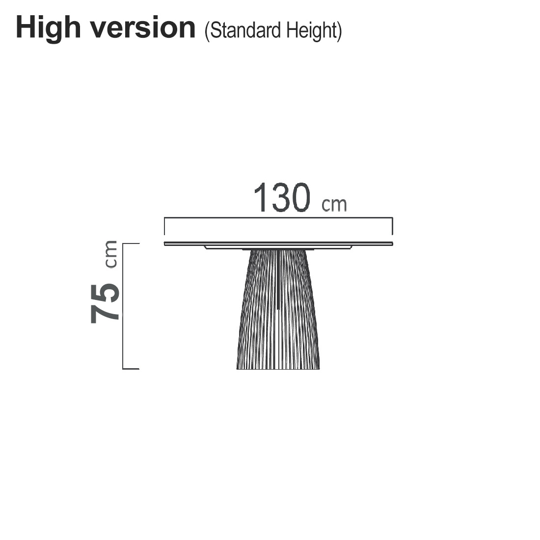 Table dimensions : Available in two sizes, 130 cm and 150 cm and two heights 65cm and 75cm.