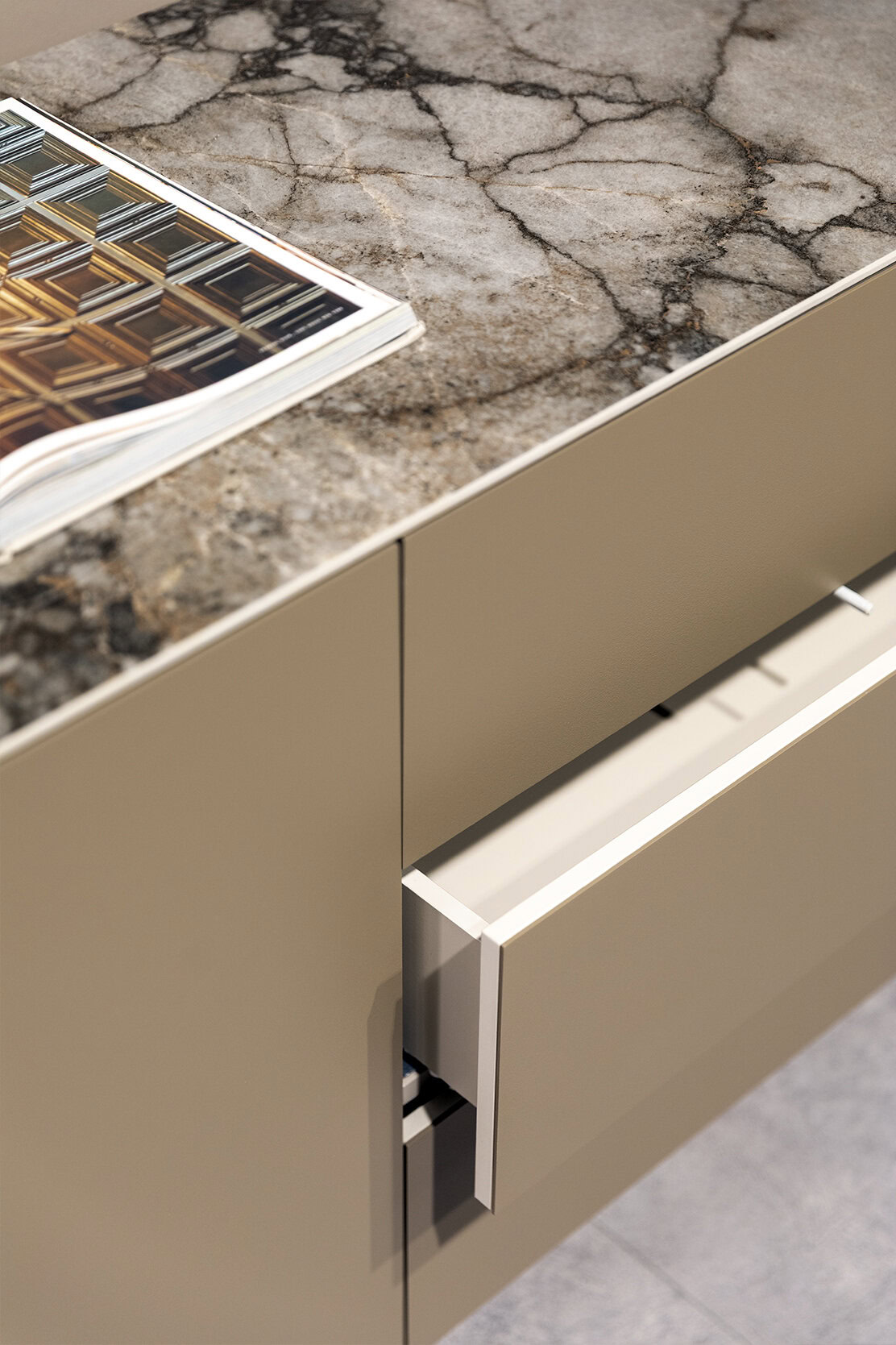 Taupe color sideboard with sleek minimalist design